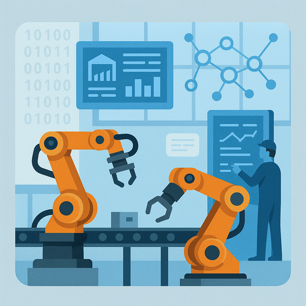 Machines making decisions based on real-time data and AI.