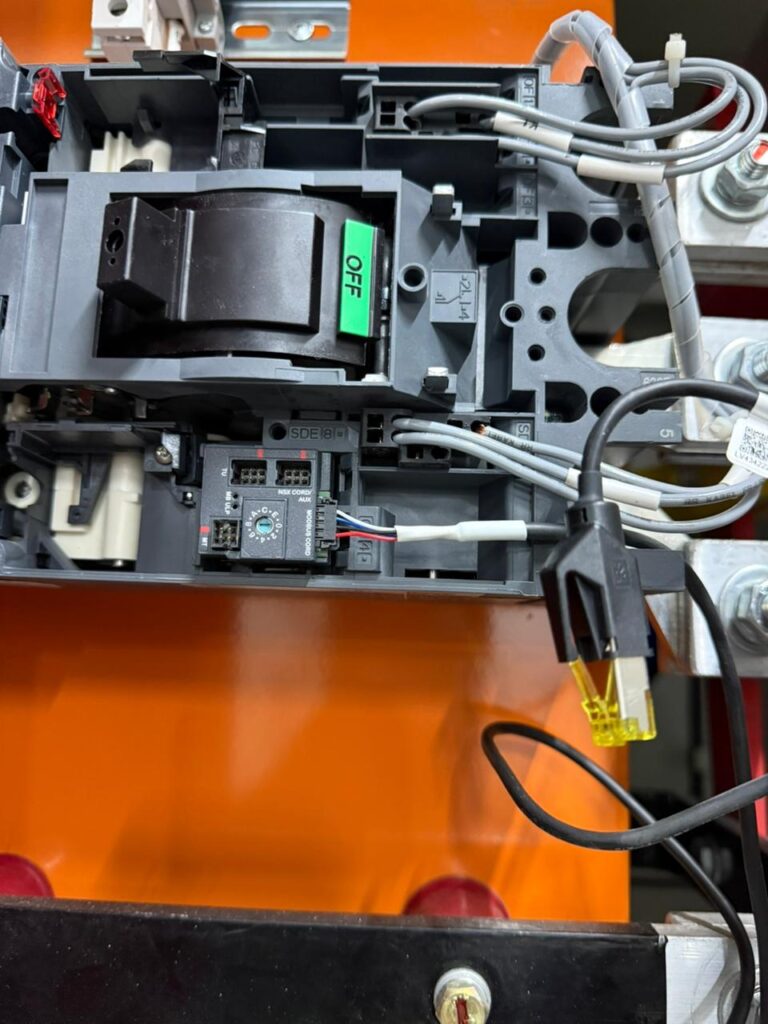 The communication module is installed directly on the MasterPact NW circuit breaker and connected to the RS-485 MODBUS network. Once connected, it continuously transmits electrical and operational data to a central monitoring system.