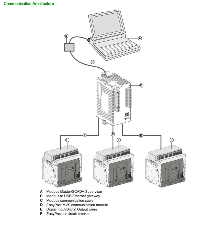 ” Explore the Schneider EasyCom Communication Module for EasyPact MVS – a powerful Modbus-based solution that enhances circuit breaker connectivity, remote monitoring, and smart energy management. “